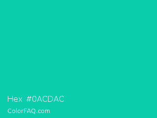 Hex #0acdac Color is a normal cyan color and the nearest color is Amazonite #00c4b0. Hex code #0acdac and RGB value is rgb(10,205,172). In RGB color space, this color is composed of 4% red, 80% green, 67% blue, In CMYK color space, this color is composed of 95% cyan, 0% magenta, 16% yellow , 20% black , In HSL color space, this color has a hue angle of 170° , 91% saturation and 42% lightness.
