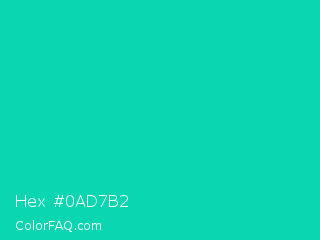 Hex #0ad7b2 Color is a normal cyan color and the nearest color is Amazonite #00c4b0. Hex code #0ad7b2 and RGB value is rgb(10,215,178). In RGB color space, this color is composed of 4% red, 84% green, 70% blue, In CMYK color space, this color is composed of 95% cyan, 0% magenta, 17% yellow , 16% black , In HSL color space, this color has a hue angle of 169° , 91% saturation and 44% lightness.