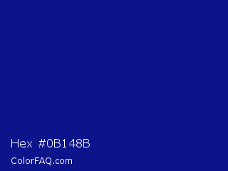 Hex #0b148b Color is a dark blue color and the nearest color is Phthalo Blue #000f89. Hex code #0b148b and RGB value is rgb(11,20,139). In RGB color space, this color is composed of 4% red, 8% green, 55% blue, In CMYK color space, this color is composed of 92% cyan, 86% magenta, 0% yellow , 45% black , In HSL color space, this color has a hue angle of 236° , 85% saturation and 29% lightness.