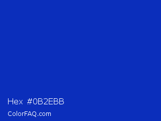 Hex #0b2ebb Color is a normal blue color and the nearest color is Persian Blue #1c39bb. Hex code #0b2ebb and RGB value is rgb(11,46,187). In RGB color space, this color is composed of 4% red, 18% green, 73% blue, In CMYK color space, this color is composed of 94% cyan, 75% magenta, 0% yellow , 27% black , In HSL color space, this color has a hue angle of 228° , 89% saturation and 39% lightness.