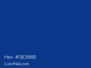 Hex #0b388b Color is a dark blue color and the nearest color is Air Force Blue USAF #00308f. Hex code #0b388b and RGB value is rgb(11,56,139). In RGB color space, this color is composed of 4% red, 22% green, 55% blue, In CMYK color space, this color is composed of 92% cyan, 60% magenta, 0% yellow , 45% black , In HSL color space, this color has a hue angle of 219° , 85% saturation and 29% lightness.