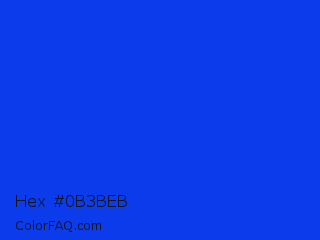 Hex #0b3beb Color is a normal blue color and the nearest color is Blue RYB #0247fe. Hex code #0b3beb and RGB value is rgb(11,59,235). In RGB color space, this color is composed of 4% red, 23% green, 92% blue, In CMYK color space, this color is composed of 95% cyan, 75% magenta, 0% yellow , 8% black , In HSL color space, this color has a hue angle of 227° , 91% saturation and 48% lightness.