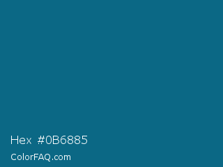 Hex #0b6885 Color is a dark blue color and the nearest color is Blue Sapphire #126180. Hex code #0b6885 and RGB value is rgb(11,104,133). In RGB color space, this color is composed of 4% red, 41% green, 52% blue, In CMYK color space, this color is composed of 92% cyan, 22% magenta, 0% yellow , 48% black , In HSL color space, this color has a hue angle of 194° , 85% saturation and 28% lightness.