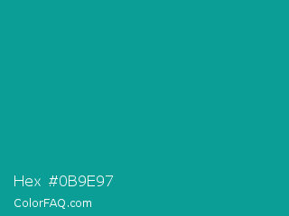Hex #0b9e97 Color is a normal cyan color and the nearest color is Viridian Green #009698. Hex code #0b9e97 and RGB value is rgb(11,158,151). In RGB color space, this color is composed of 4% red, 62% green, 59% blue, In CMYK color space, this color is composed of 93% cyan, 0% magenta, 4% yellow , 38% black , In HSL color space, this color has a hue angle of 177° , 87% saturation and 33% lightness.