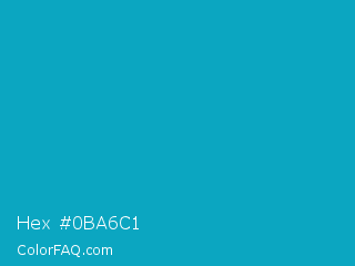 Hex #0ba6c1 Color is a normal cyan color and the nearest color is Pacific Blue Crayola #009dc4. Hex code #0ba6c1 and RGB value is rgb(11,166,193). In RGB color space, this color is composed of 4% red, 65% green, 76% blue, In CMYK color space, this color is composed of 94% cyan, 14% magenta, 0% yellow , 24% black , In HSL color space, this color has a hue angle of 189° , 89% saturation and 40% lightness.