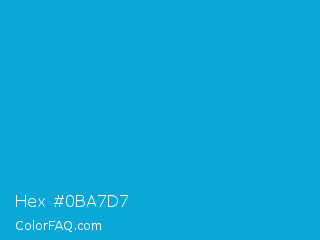 Hex #0ba7d7 Color is a normal blue color and the nearest color is Cerulean #02a4d3. Hex code #0ba7d7 and RGB value is rgb(11,167,215). In RGB color space, this color is composed of 4% red, 65% green, 84% blue, In CMYK color space, this color is composed of 95% cyan, 22% magenta, 0% yellow , 16% black , In HSL color space, this color has a hue angle of 194° , 90% saturation and 44% lightness.