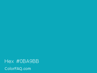 Hex #0ba9bb Color is a normal cyan color and the nearest color is Blue Green #0d98ba. Hex code #0ba9bb and RGB value is rgb(11,169,187). In RGB color space, this color is composed of 4% red, 66% green, 73% blue, In CMYK color space, this color is composed of 94% cyan, 10% magenta, 0% yellow , 27% black , In HSL color space, this color has a hue angle of 186° , 89% saturation and 39% lightness.
