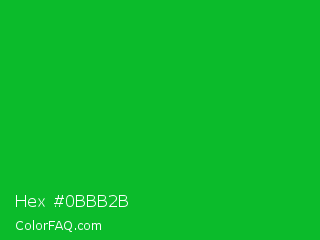 Hex #0bbb2b Color is a normal green color and the nearest color is Dark Pastel Green #03c03c. Hex code #0bbb2b and RGB value is rgb(11,187,43). In RGB color space, this color is composed of 4% red, 73% green, 17% blue, In CMYK color space, this color is composed of 94% cyan, 0% magenta, 77% yellow , 27% black , In HSL color space, this color has a hue angle of 131° , 89% saturation and 39% lightness.