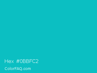 Hex #0bbfc2 Color is a normal cyan color and the nearest color is Tiffany Blue #0abab5. Hex code #0bbfc2 and RGB value is rgb(11,191,194). In RGB color space, this color is composed of 4% red, 75% green, 76% blue, In CMYK color space, this color is composed of 94% cyan, 2% magenta, 0% yellow , 24% black , In HSL color space, this color has a hue angle of 181° , 89% saturation and 40% lightness.