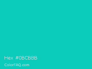 Hex #0bcbbb Color is a normal cyan color and the nearest color is Amazonite #00c4b0. Hex code #0bcbbb and RGB value is rgb(11,203,187). In RGB color space, this color is composed of 4% red, 80% green, 73% blue, In CMYK color space, this color is composed of 95% cyan, 0% magenta, 8% yellow , 20% black , In HSL color space, this color has a hue angle of 175° , 90% saturation and 42% lightness.
