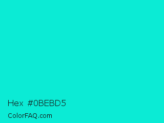Hex #0bebd5 Color is a normal cyan color and the nearest color is Bright Turquoise #08e8de. Hex code #0bebd5 and RGB value is rgb(11,235,213). In RGB color space, this color is composed of 4% red, 92% green, 84% blue, In CMYK color space, this color is composed of 95% cyan, 0% magenta, 9% yellow , 8% black , In HSL color space, this color has a hue angle of 174° , 91% saturation and 48% lightness.