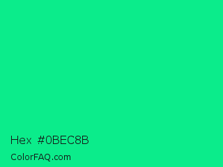 Hex #0bec8b Color is a normal green color and the nearest color is Medium Spring Green #00fa9a. Hex code #0bec8b and RGB value is rgb(11,236,139). In RGB color space, this color is composed of 4% red, 93% green, 55% blue, In CMYK color space, this color is composed of 95% cyan, 0% magenta, 41% yellow , 7% black , In HSL color space, this color has a hue angle of 154° , 91% saturation and 48% lightness.