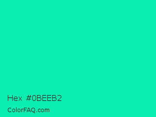 Hex #0beeb2 Color is a normal cyan color and the nearest color is Medium Spring Green #00fa9a. Hex code #0beeb2 and RGB value is rgb(11,238,178). In RGB color space, this color is composed of 4% red, 93% green, 70% blue, In CMYK color space, this color is composed of 95% cyan, 0% magenta, 25% yellow , 7% black , In HSL color space, this color has a hue angle of 164° , 91% saturation and 49% lightness.