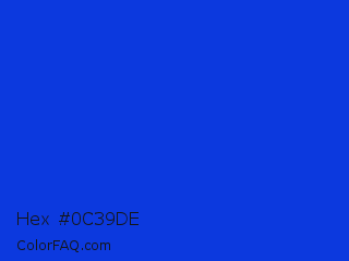 Hex #0c39de Color is a normal blue color and the nearest color is Palatinate Blue #273be2. Hex code #0c39de and RGB value is rgb(12,57,222). In RGB color space, this color is composed of 5% red, 22% green, 87% blue, In CMYK color space, this color is composed of 95% cyan, 74% magenta, 0% yellow , 13% black , In HSL color space, this color has a hue angle of 227° , 90% saturation and 46% lightness.