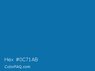 Hex #0c71ab Color is a normal blue color and the nearest color is Honolulu Blue #006db0. Hex code #0c71ab and RGB value is rgb(12,113,171). In RGB color space, this color is composed of 5% red, 44% green, 67% blue, In CMYK color space, this color is composed of 93% cyan, 34% magenta, 0% yellow , 33% black , In HSL color space, this color has a hue angle of 202° , 87% saturation and 36% lightness.