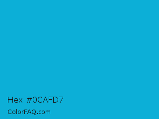 Hex #0cafd7 Color is a normal cyan color and the nearest color is Cerulean #02a4d3. Hex code #0cafd7 and RGB value is rgb(12,175,215). In RGB color space, this color is composed of 5% red, 69% green, 84% blue, In CMYK color space, this color is composed of 94% cyan, 19% magenta, 0% yellow , 16% black , In HSL color space, this color has a hue angle of 192° , 89% saturation and 45% lightness.
