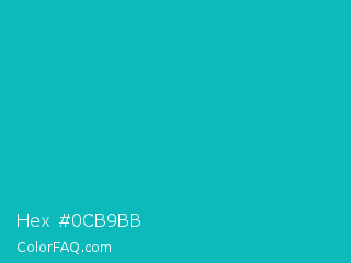 Hex #0cb9bb Color is a normal cyan color and the nearest color is Tiffany Blue #0abab5. Hex code #0cb9bb and RGB value is rgb(12,185,187). In RGB color space, this color is composed of 5% red, 73% green, 73% blue, In CMYK color space, this color is composed of 94% cyan, 1% magenta, 0% yellow , 27% black , In HSL color space, this color has a hue angle of 181° , 88% saturation and 39% lightness.