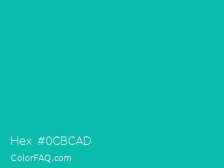 Hex #0cbcad Color is a normal cyan color and the nearest color is Tiffany Blue #0abab5. Hex code #0cbcad and RGB value is rgb(12,188,173). In RGB color space, this color is composed of 5% red, 74% green, 68% blue, In CMYK color space, this color is composed of 94% cyan, 0% magenta, 8% yellow , 26% black , In HSL color space, this color has a hue angle of 175° , 88% saturation and 39% lightness.