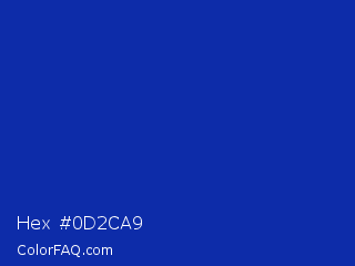 Hex #0d2ca9 Color is a normal blue color and the nearest color is Egyptian Blue #1034a6. Hex code #0d2ca9 and RGB value is rgb(13,44,169). In RGB color space, this color is composed of 5% red, 17% green, 66% blue, In CMYK color space, this color is composed of 92% cyan, 74% magenta, 0% yellow , 34% black , In HSL color space, this color has a hue angle of 228° , 86% saturation and 36% lightness.