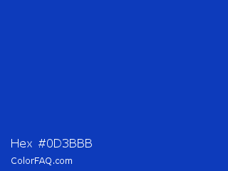 Hex #0d3bbb Color is a normal blue color and the nearest color is Persian Blue #1c39bb. Hex code #0d3bbb and RGB value is rgb(13,59,187). In RGB color space, this color is composed of 5% red, 23% green, 73% blue, In CMYK color space, this color is composed of 93% cyan, 68% magenta, 0% yellow , 27% black , In HSL color space, this color has a hue angle of 224° , 87% saturation and 39% lightness.