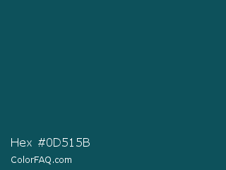 Hex #0d515b Color is a very dark cyan color and the nearest color is Deep Sea Green #095859. Hex code #0d515b and RGB value is rgb(13,81,91). In RGB color space, this color is composed of 5% red, 32% green, 36% blue, In CMYK color space, this color is composed of 86% cyan, 11% magenta, 0% yellow , 64% black , In HSL color space, this color has a hue angle of 188° , 75% saturation and 20% lightness.