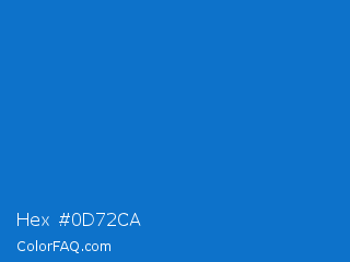 Hex #0d72ca Color is a normal blue color and the nearest color is True Blue #0073cf. Hex code #0d72ca and RGB value is rgb(13,114,202). In RGB color space, this color is composed of 5% red, 45% green, 79% blue, In CMYK color space, this color is composed of 94% cyan, 44% magenta, 0% yellow , 21% black , In HSL color space, this color has a hue angle of 208° , 88% saturation and 42% lightness.