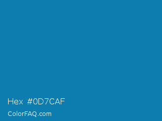 Hex #0d7caf Color is a normal blue color and the nearest color is Deep Cerulean #007ba7. Hex code #0d7caf and RGB value is rgb(13,124,175). In RGB color space, this color is composed of 5% red, 49% green, 69% blue, In CMYK color space, this color is composed of 93% cyan, 29% magenta, 0% yellow , 31% black , In HSL color space, this color has a hue angle of 199° , 86% saturation and 37% lightness.