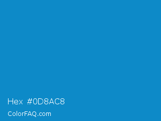 Hex #0d8ac8 Color is a normal blue color and the nearest color is Rich Electric Blue #0892d0. Hex code #0d8ac8 and RGB value is rgb(13,138,200). In RGB color space, this color is composed of 5% red, 54% green, 78% blue, In CMYK color space, this color is composed of 94% cyan, 31% magenta, 0% yellow , 22% black , In HSL color space, this color has a hue angle of 200° , 88% saturation and 42% lightness.