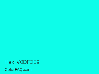 Hex #0dfde9 Color is a normal cyan color and the nearest color is Turquoise Blue #00ffef. Hex code #0dfde9 and RGB value is rgb(13,253,233). In RGB color space, this color is composed of 5% red, 99% green, 91% blue, In CMYK color space, this color is composed of 95% cyan, 0% magenta, 8% yellow , 1% black , In HSL color space, this color has a hue angle of 175° , 98% saturation and 52% lightness.