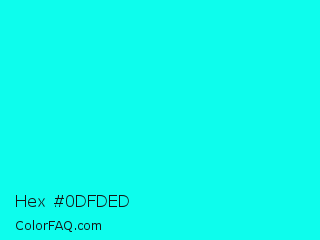 Hex #0dfded Color is a normal cyan color and the nearest color is Turquoise Blue #00ffef. Hex code #0dfded and RGB value is rgb(13,253,237). In RGB color space, this color is composed of 5% red, 99% green, 93% blue, In CMYK color space, this color is composed of 95% cyan, 0% magenta, 6% yellow , 1% black , In HSL color space, this color has a hue angle of 176° , 98% saturation and 52% lightness.