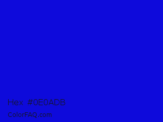 Hex #0e0adb Color is a normal indigo color and the nearest color is Medium Blue #0000cd. Hex code #0e0adb and RGB value is rgb(14,10,219). In RGB color space, this color is composed of 5% red, 4% green, 86% blue, In CMYK color space, this color is composed of 94% cyan, 95% magenta, 0% yellow , 14% black , In HSL color space, this color has a hue angle of 241° , 91% saturation and 45% lightness.
