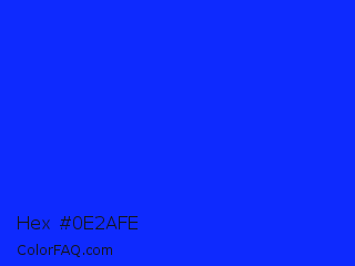 Hex #0e2afe Color is a normal blue color and the nearest color is Bluebonnet #1c1cf0. Hex code #0e2afe and RGB value is rgb(14,42,254). In RGB color space, this color is composed of 5% red, 16% green, 100% blue, In CMYK color space, this color is composed of 94% cyan, 83% magenta, 0% yellow , 0% black , In HSL color space, this color has a hue angle of 233° , 99% saturation and 53% lightness.