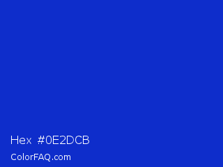 Hex #0e2dcb Color is a normal blue color and the nearest color is Persian Blue #1c39bb. Hex code #0e2dcb and RGB value is rgb(14,45,203). In RGB color space, this color is composed of 5% red, 18% green, 80% blue, In CMYK color space, this color is composed of 93% cyan, 78% magenta, 0% yellow , 20% black , In HSL color space, this color has a hue angle of 230° , 87% saturation and 43% lightness.
