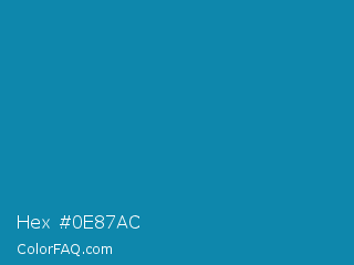Hex #0e87ac Color is a normal blue color and the nearest color is Blue Munsell #0093af. Hex code #0e87ac and RGB value is rgb(14,135,172). In RGB color space, this color is composed of 5% red, 53% green, 67% blue, In CMYK color space, this color is composed of 92% cyan, 22% magenta, 0% yellow , 33% black , In HSL color space, this color has a hue angle of 194° , 85% saturation and 36% lightness.