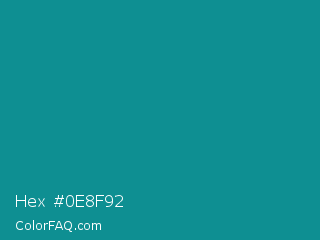Hex #0e8f92 Color is a normal cyan color and the nearest color is Blue Chill #0c8990. Hex code #0e8f92 and RGB value is rgb(14,143,146). In RGB color space, this color is composed of 5% red, 56% green, 57% blue, In CMYK color space, this color is composed of 90% cyan, 2% magenta, 0% yellow , 43% black , In HSL color space, this color has a hue angle of 181° , 83% saturation and 31% lightness.