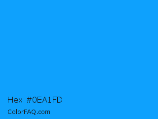 Hex #0ea1fd Color is a normal blue color and the nearest color is Vivid Cerulean #00aaee. Hex code #0ea1fd and RGB value is rgb(14,161,253). In RGB color space, this color is composed of 5% red, 63% green, 99% blue, In CMYK color space, this color is composed of 94% cyan, 36% magenta, 0% yellow , 1% black , In HSL color space, this color has a hue angle of 203° , 98% saturation and 52% lightness.