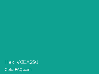 Hex #0ea291 Color is a normal cyan color and the nearest color is Niagara #06a189. Hex code #0ea291 and RGB value is rgb(14,162,145). In RGB color space, this color is composed of 5% red, 64% green, 57% blue, In CMYK color space, this color is composed of 91% cyan, 0% magenta, 10% yellow , 36% black , In HSL color space, this color has a hue angle of 173° , 84% saturation and 35% lightness.