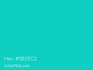 Hex #0ecfc2 Color is a normal cyan color and the nearest color is Robins Egg Blue #00cccc. Hex code #0ecfc2 and RGB value is rgb(14,207,194). In RGB color space, this color is composed of 5% red, 81% green, 76% blue, In CMYK color space, this color is composed of 93% cyan, 0% magenta, 6% yellow , 19% black , In HSL color space, this color has a hue angle of 176° , 87% saturation and 43% lightness.