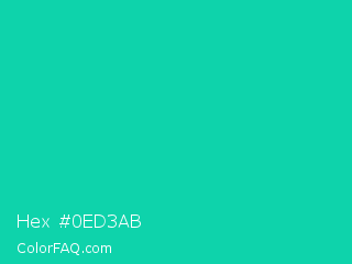 Hex #0ed3ab Color is a normal cyan color and the nearest color is Amazonite #00c4b0. Hex code #0ed3ab and RGB value is rgb(14,211,171). In RGB color space, this color is composed of 5% red, 83% green, 67% blue, In CMYK color space, this color is composed of 93% cyan, 0% magenta, 19% yellow , 17% black , In HSL color space, this color has a hue angle of 168° , 88% saturation and 44% lightness.
