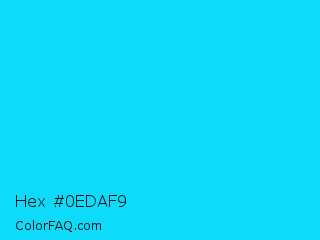 Hex #0edaf9 Color is a normal cyan color and the nearest color is Vivid Sky Blue #00ccff. Hex code #0edaf9 and RGB value is rgb(14,218,249). In RGB color space, this color is composed of 5% red, 85% green, 98% blue, In CMYK color space, this color is composed of 94% cyan, 12% magenta, 0% yellow , 2% black , In HSL color space, this color has a hue angle of 188° , 95% saturation and 52% lightness.