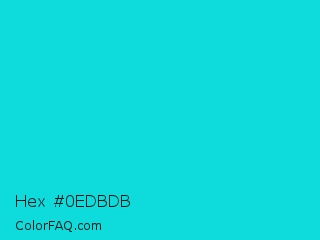 Hex #0edbdb Color is a normal cyan color and the nearest color is Bright Turquoise #08e8de. Hex code #0edbdb and RGB value is rgb(14,219,219). In RGB color space, this color is composed of 5% red, 86% green, 86% blue, In CMYK color space, this color is composed of 94% cyan, 0% magenta, 0% yellow , 14% black , In HSL color space, this color has a hue angle of 180° , 88% saturation and 46% lightness.