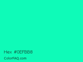 Hex #0efbb8 Color is a normal green color and the nearest color is Medium Spring Green #00fa9a. Hex code #0efbb8 and RGB value is rgb(14,251,184). In RGB color space, this color is composed of 5% red, 98% green, 72% blue, In CMYK color space, this color is composed of 94% cyan, 0% magenta, 27% yellow , 2% black , In HSL color space, this color has a hue angle of 163° , 97% saturation and 52% lightness.