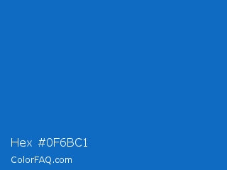 Hex #0f6bc1 Color is a normal blue color and the nearest color is Denim #1560bd. Hex code #0f6bc1 and RGB value is rgb(15,107,193). In RGB color space, this color is composed of 6% red, 42% green, 76% blue, In CMYK color space, this color is composed of 92% cyan, 45% magenta, 0% yellow , 24% black , In HSL color space, this color has a hue angle of 209° , 86% saturation and 41% lightness.