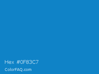 Hex #0f83c7 Color is a normal blue color and the nearest color is Cyan Cornflower Blue #188bc2. Hex code #0f83c7 and RGB value is rgb(15,131,199). In RGB color space, this color is composed of 6% red, 51% green, 78% blue, In CMYK color space, this color is composed of 92% cyan, 34% magenta, 0% yellow , 22% black , In HSL color space, this color has a hue angle of 202° , 86% saturation and 42% lightness.