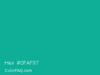 Hex #0faf97 Color is a normal cyan color and the nearest color is Persian Green #00a693. Hex code #0faf97 and RGB value is rgb(15,175,151). In RGB color space, this color is composed of 6% red, 69% green, 59% blue, In CMYK color space, this color is composed of 91% cyan, 0% magenta, 14% yellow , 31% black , In HSL color space, this color has a hue angle of 171° , 84% saturation and 37% lightness.