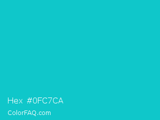 Hex #0fc7ca Color is a normal cyan color and the nearest color is Turquoise Surf #00c5cd. Hex code #0fc7ca and RGB value is rgb(15,199,202). In RGB color space, this color is composed of 6% red, 78% green, 79% blue, In CMYK color space, this color is composed of 93% cyan, 1% magenta, 0% yellow , 21% black , In HSL color space, this color has a hue angle of 181° , 86% saturation and 43% lightness.