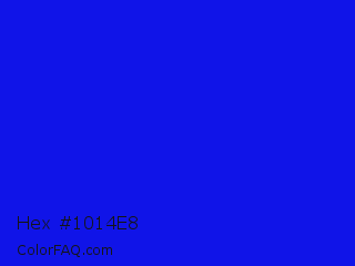 Hex #1014e8 Color is a normal blue color and the nearest color is Bluebonnet #1c1cf0. Hex code #1014e8 and RGB value is rgb(16,20,232). In RGB color space, this color is composed of 6% red, 8% green, 91% blue, In CMYK color space, this color is composed of 93% cyan, 91% magenta, 0% yellow , 9% black , In HSL color space, this color has a hue angle of 239° , 87% saturation and 49% lightness.