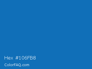 Hex #106fb8 Color is a normal blue color and the nearest color is Green Blue #1164b4. Hex code #106fb8 and RGB value is rgb(16,111,184). In RGB color space, this color is composed of 6% red, 44% green, 72% blue, In CMYK color space, this color is composed of 91% cyan, 40% magenta, 0% yellow , 28% black , In HSL color space, this color has a hue angle of 206° , 84% saturation and 39% lightness.