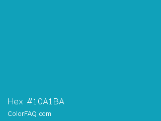 Hex #10a1ba Color is a normal cyan color and the nearest color is Blue Green #0d98ba. Hex code #10a1ba and RGB value is rgb(16,161,186). In RGB color space, this color is composed of 6% red, 63% green, 73% blue, In CMYK color space, this color is composed of 91% cyan, 13% magenta, 0% yellow , 27% black , In HSL color space, this color has a hue angle of 189° , 84% saturation and 40% lightness.