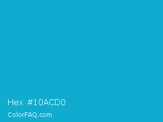 Hex #10acd0 Color is a normal cyan color and the nearest color is Pacific Blue #1ca9c9. Hex code #10acd0 and RGB value is rgb(16,172,208). In RGB color space, this color is composed of 6% red, 67% green, 82% blue, In CMYK color space, this color is composed of 92% cyan, 17% magenta, 0% yellow , 18% black , In HSL color space, this color has a hue angle of 191° , 86% saturation and 44% lightness.